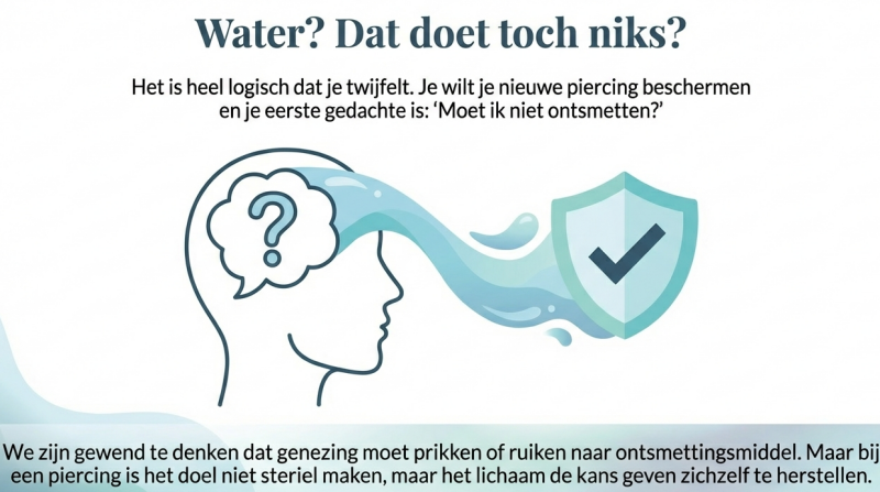 Onthoud: Water geneest je piercing niet. Jouw lichaam geneest de piercing. Het water zorgt er alleen voor dat de omstandigheden schoon genoeg zijn zodat je lichaam zijn werk kan doen.