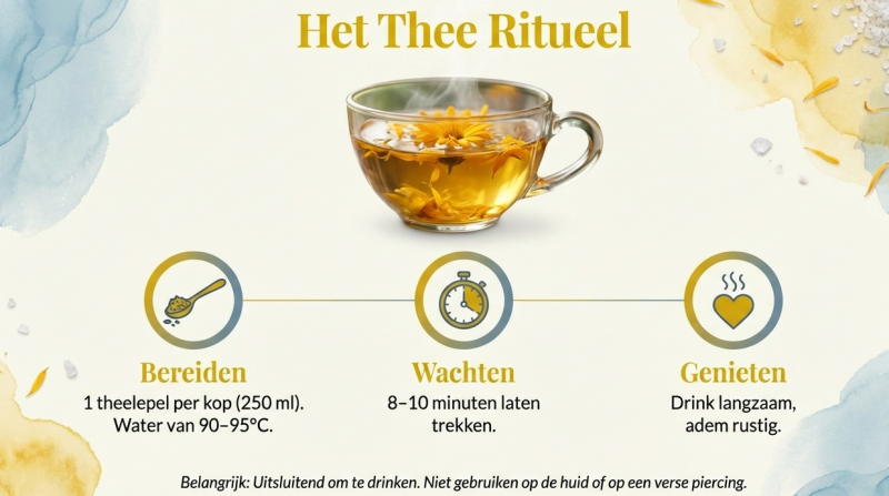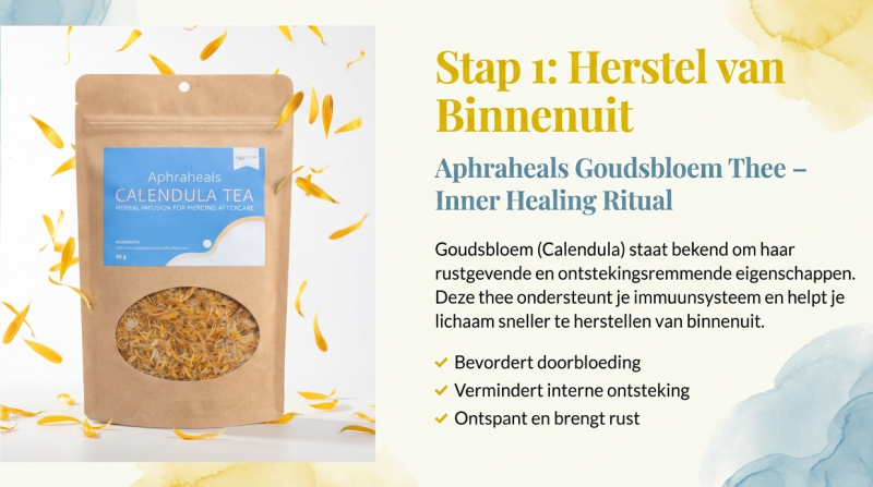 • Let op: Deze thee is puur om te drinken, niet om op de piercing te smeren!.