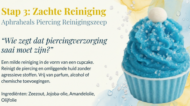 • Hoe te gebruiken: Schuim de zeep op in je schone handen, was voorzichtig rondom de piercing (zonder te draaien!) en spoel goed af.